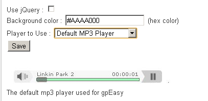 This is a flexible media player plugin that is meant to allow the insertion of a media player (video or mp3) anywhere in the page contents as you create it, no special pages or extra sections are required. Note currently only supports mp3 files.