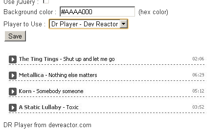 To select the player you want to use go to Player to Use selection box and select your prefered player, you will also be given a preview image of how the player looks like.